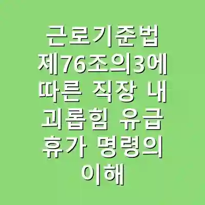 근로기준법 제76조의3은 직장 내 괴롭힘에 대한 법적 근거를 제공하며, 피해 근로자는 유급 휴가를 요구할 수 있는 권리가 있습니다. 사용자는 피해자의 의견을 고려하여 적절한 조치를 취해야 하며, 조직 내 괴롭힘 예방을 위해 교육 및 인식 제고가 필요합니다.