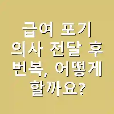 급여 포기 의사 전달 후 번복이 어렵지만, 관련 절차와 법적 조언을 통해 해결할 수 있습니다. 서류 준비와 인사부서와의 소통이 중요하며, 필요한 경우 법률 전문가의 도움을 받는 것이 바람직합니다.