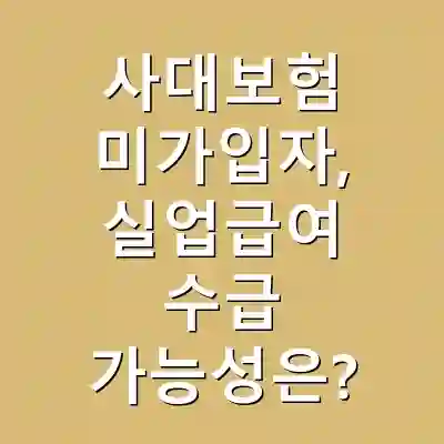 사대보험의 미가입 여부는 실업급여 수급에 중대한 영향을 미칩니다. 따라서 사대보험 가입이 필수적이며, 미가입 시 다른 지원 제도를 고려해야 합니다. 실업급여와 국민취업지원제도의 차이를 이해하고 필요한 지원을 확보하는 것이 중요합니다.