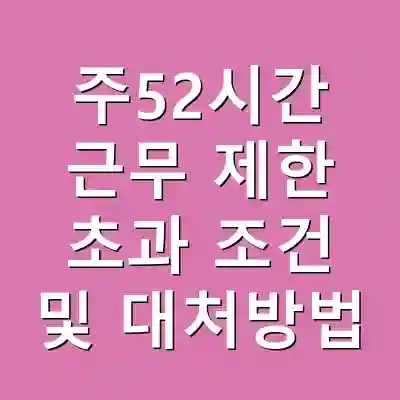 주52시간 근무 제한에 대한 관심이 높아지고 있는 요즘, 많은 근로자들이 이 규정이 실제로 어떻게 적용되는지에 대한 이해가 부족한 상황입니다. 주52시간이란 법정 근로시간 40시간과 연장 근로 12시간을 합쳐 총 52시간으로, 이를 초과할 수 있는 조건이 있는지 알고 계신가요? 이 글에서는 주52시간 근무 제한을 초과할 수 있는 조건과 관련된 법적 측면을 해부하고, 이에 대한 대처 방안도 제시하겠습니다. 이 글을 통해 주52시간 근무 제한에 대한 이해도를 높이고, 법적 문제를 예방할 수 있는 방법을 익힐 수 있습니다.