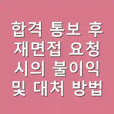 합격 통보 후 재면접 요청은 많은 지원자들에게 혼란을 줄 수 있는 상황입니다. 이러한 요청을 받았을 때, 면접에 응할 경우 불이익이 생길지에 대한 우려는 자연스러운 것이죠. 하지만 이를 명확히 알고 대처하는 것이 중요합니다. 이 글에서는 재면접 요청 시의 상황과 그에 따른 불이익, 그리고 효과적인 대처 방안에 대해 알아보겠습니다. 이 글을 통해 불안감을 해소하고 자신 있게 다음 단계를 준비할 수 있는 정보를 제공받을 수 있습니다.