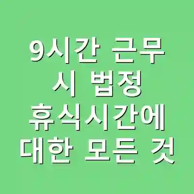 근로자의 근무시간 및 휴식시간에 대한 규정은 많은 사업주와 근로자들에게 중요한 주제입니다. 특히, 9시간 근무 시 법정 휴식시간이 어떻게 적용되는지에 대한 명확한 정보가 필요합니다. 근로기준법에 따르면, 일정 시간 이상의 근무에 대해 휴식시간이 정해져 있으며, 이는 근로자의 권리와 직결되는 사안입니다. 이 글을 통해 9시간 근무 시 어떤 법정 휴식시간이 정해져 있는지, 이를 준수하지 않았을 경우 어떤 문제가 발생할 수 있는지를 상세히 안내하겠습니다.