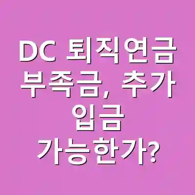 퇴직연금은 근로자의 노후 소득을 안정적으로 보장하기 위한 중요한 제도입니다. 특히 DC형 퇴직연금은 근로자가 직접 투자하여 수익을 창출할 수 있는 장점이 있습니다. 하지만 퇴직금이 부족한 경우 추가로 입금을 할 수 있는지에 대한 의문이 많습니다. 이 글에서는 DC 퇴직연금의 부족금과 추가 입금 가능성에 대해 자세히 알아보겠습니다. 이 글을 통해 퇴직연금 관리에 필요한 정보와 팁을 얻어가실 수 있습니다.